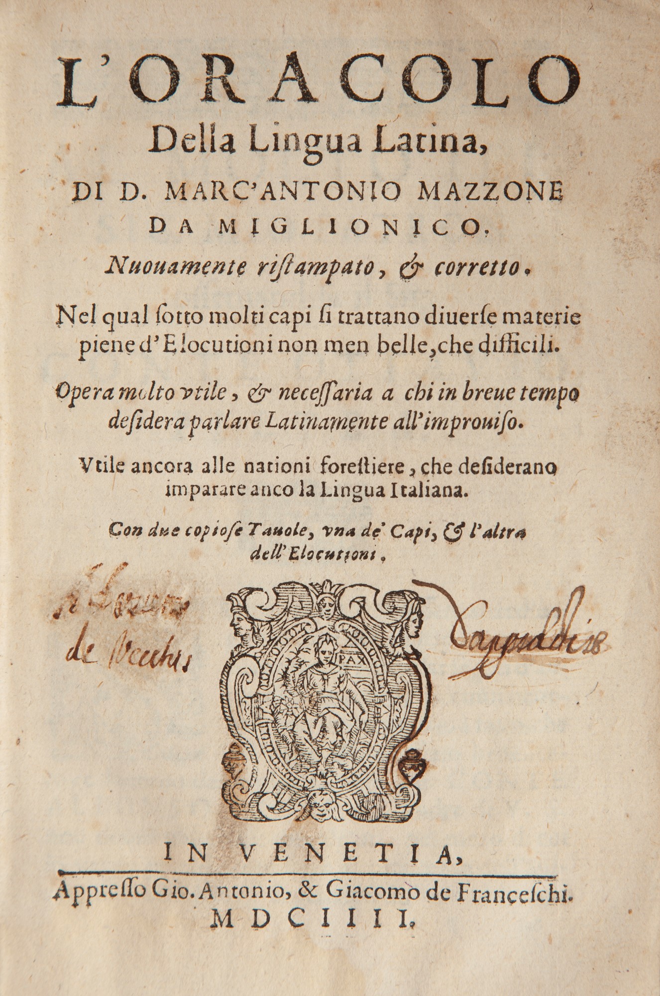 Marcantonio Mazzone. L'oracolo della lingua latina In 16°. Interessante...