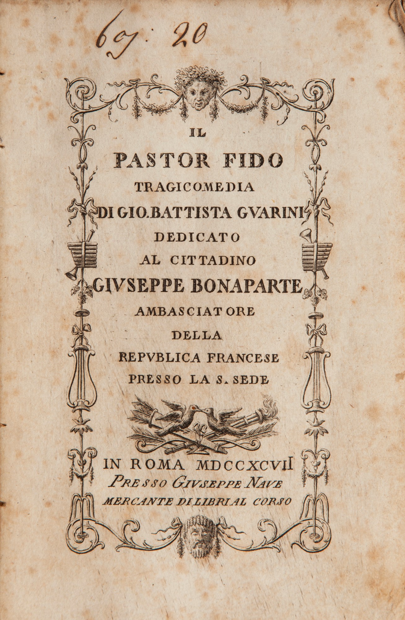 In 16° piccolo. Dedicato a Giuseppe Bonaparte. Legatura in cartonato con titolo al dorso. Difetti.