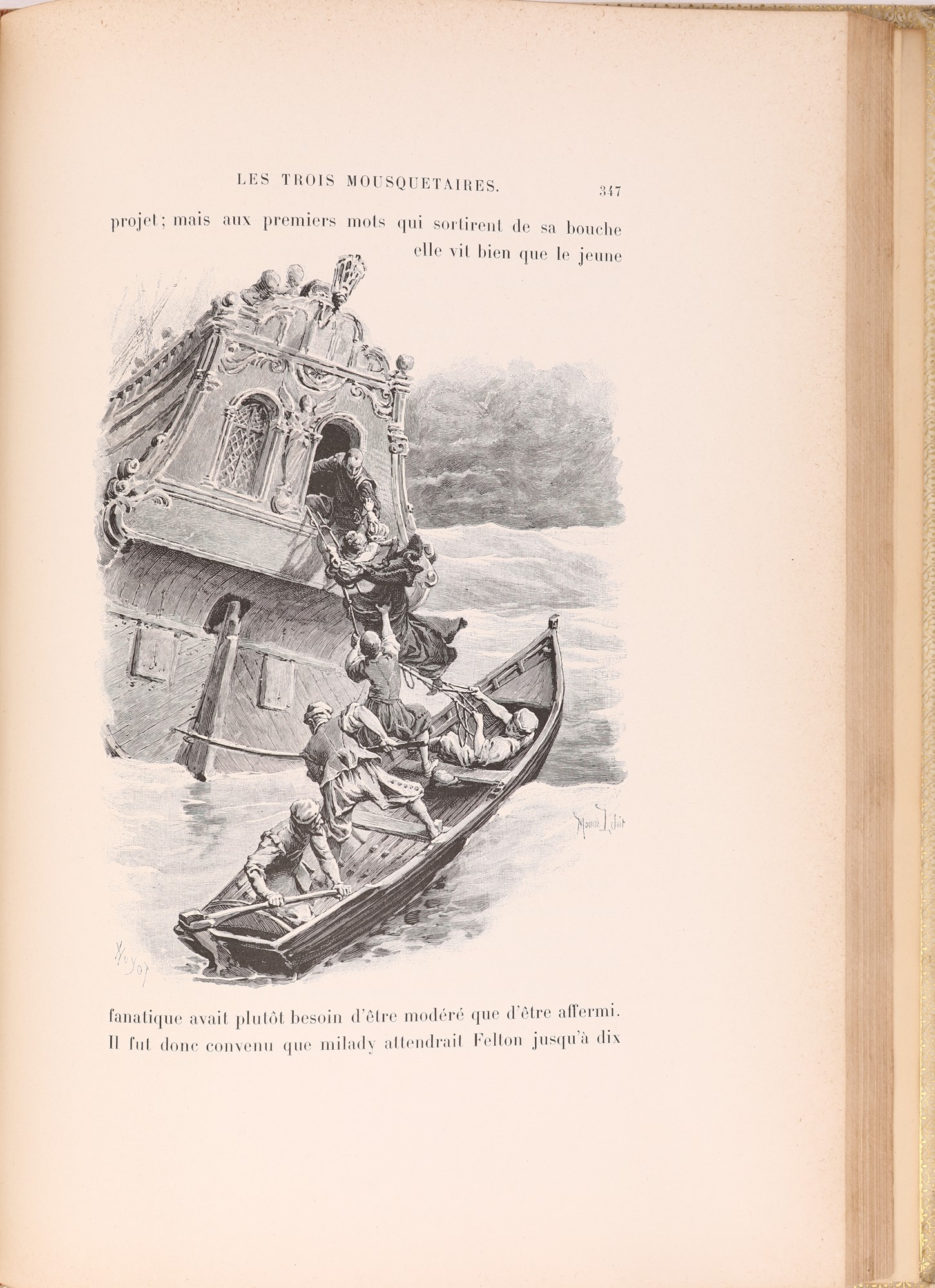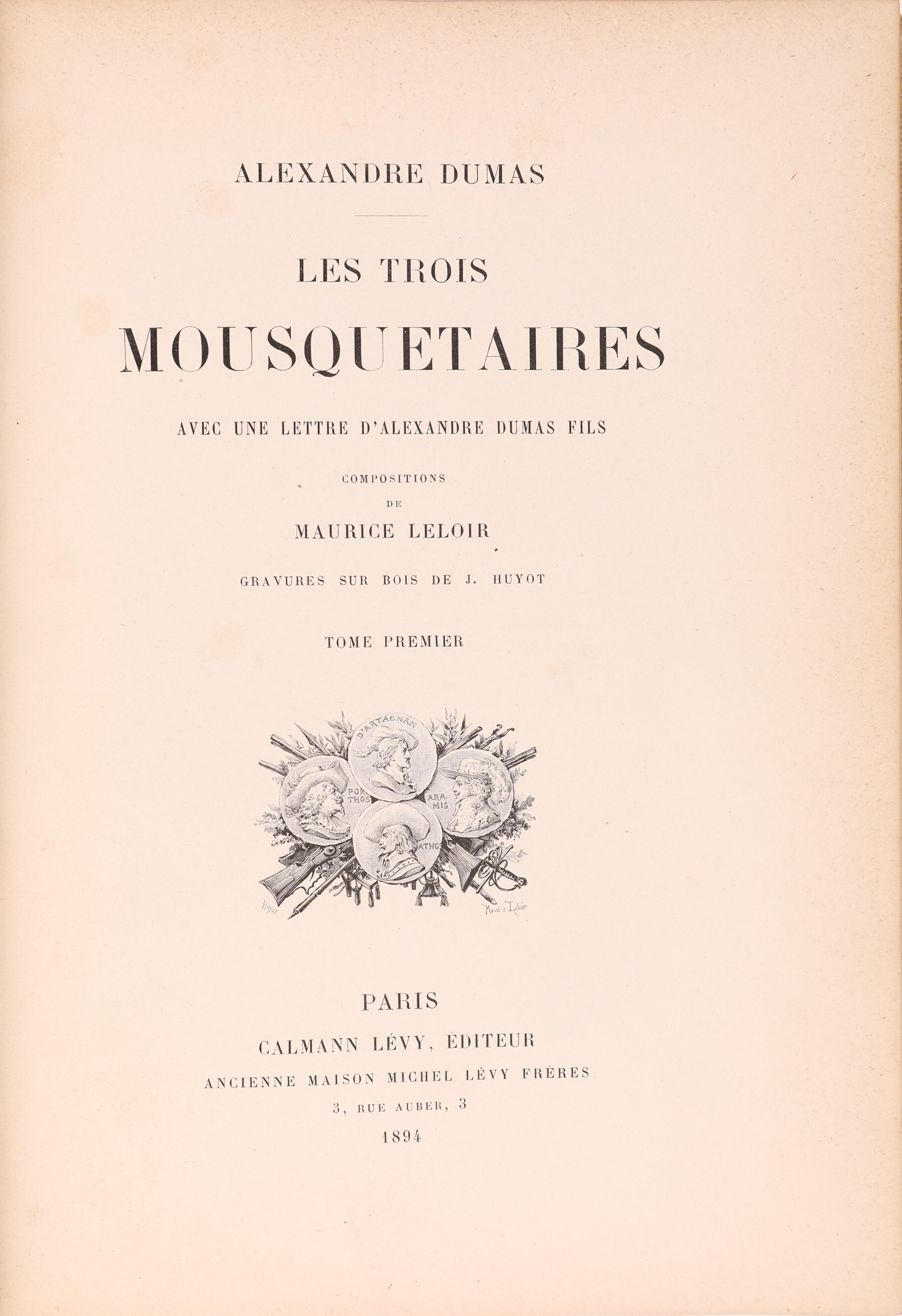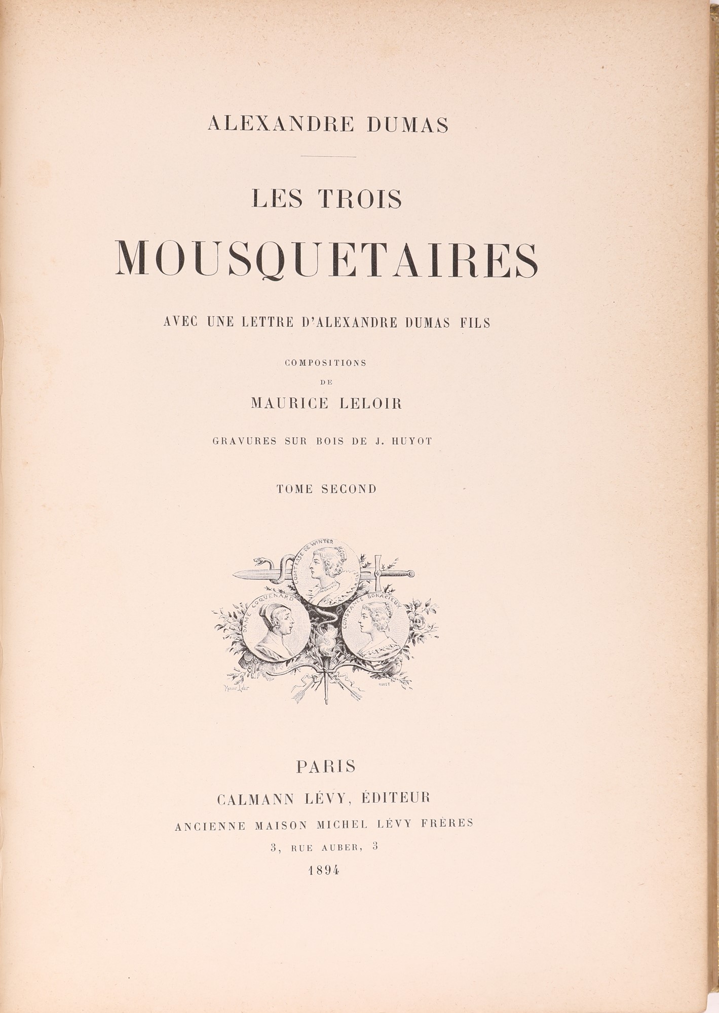 In 4° 2 Volumi. Edizione riccamente illustrata del romanzo scritto nel 1844 da Alexandre Dumas, con 245 incisioni nel testo su disegni di Maurice Leloir realizzate da Jules Huyot. Splendide legature in piena pergamena coeva firmate E. Worrall - Binder - Birmingham, con titoli e fregi in oro ai piatti e fregi dorati ai dorsi; tasselli in pelle con titoli in oro ai dorsi e taglio superiore dorato.