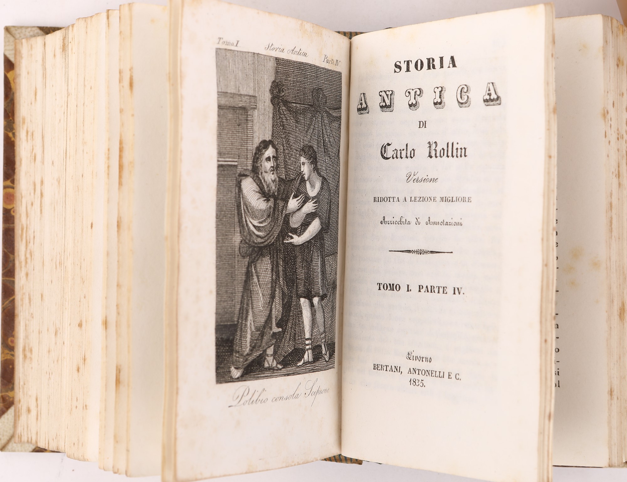 In 16° Opera completa in 44 tomi in 11 volumi. Ritratto dell'autore in antiporta del primo volume. In ogni antiporta una bella incisione incisa dal Persichini su disegni del Pinelli. Legature coeve in mezza pelle con titoli e fregi ai dorsi.