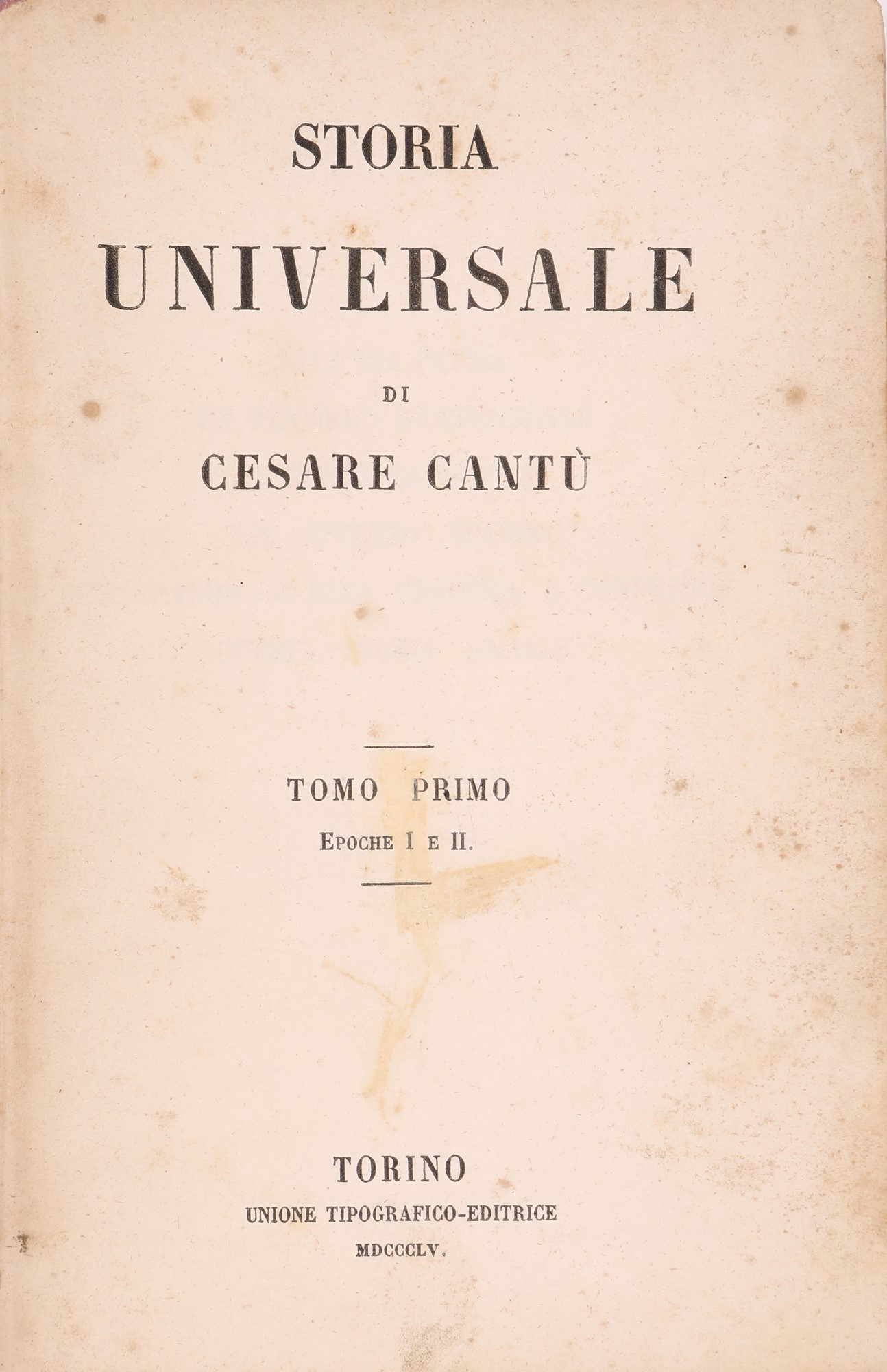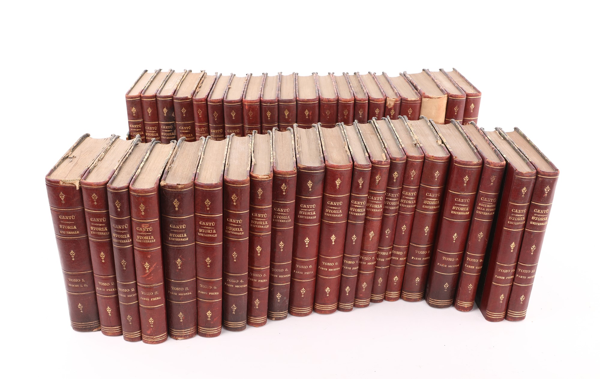 40 volumi complessivi In 16° La Storia in 12 tomi in 24 volumi, i Documenti in 9 tomi in 16 volumi. Monumentale opera storica che negli intenti dell'Editore della prima edizione (Pomba, Torino 1838-1846) e dell'Autore avrebbe dovuto raccogliere tutta la storia dell'umanità; di certo la "più letta e consultata per un cinquantennio in Italia". Legatura in mezza pelle coeva con titoli in oro al dorso (difetti).
