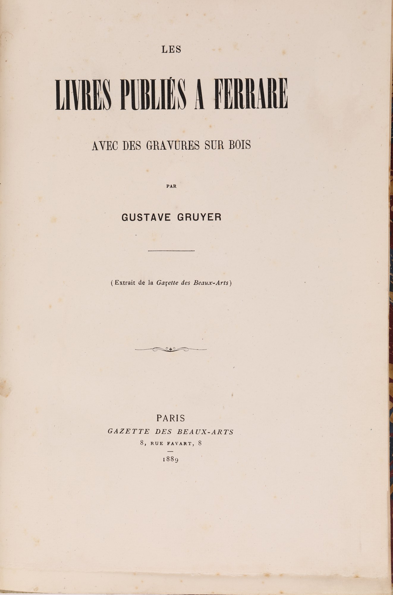 Gustave Gruyer. Les livres publiès a Ferrare avec des gravures sur bois (autografato)