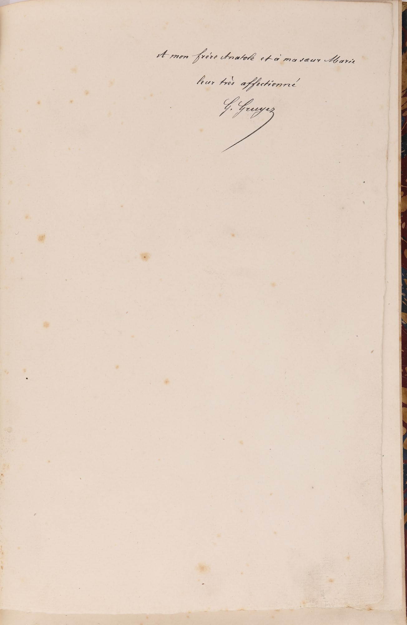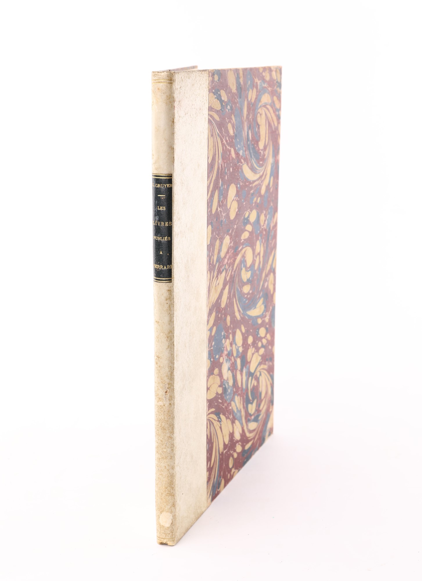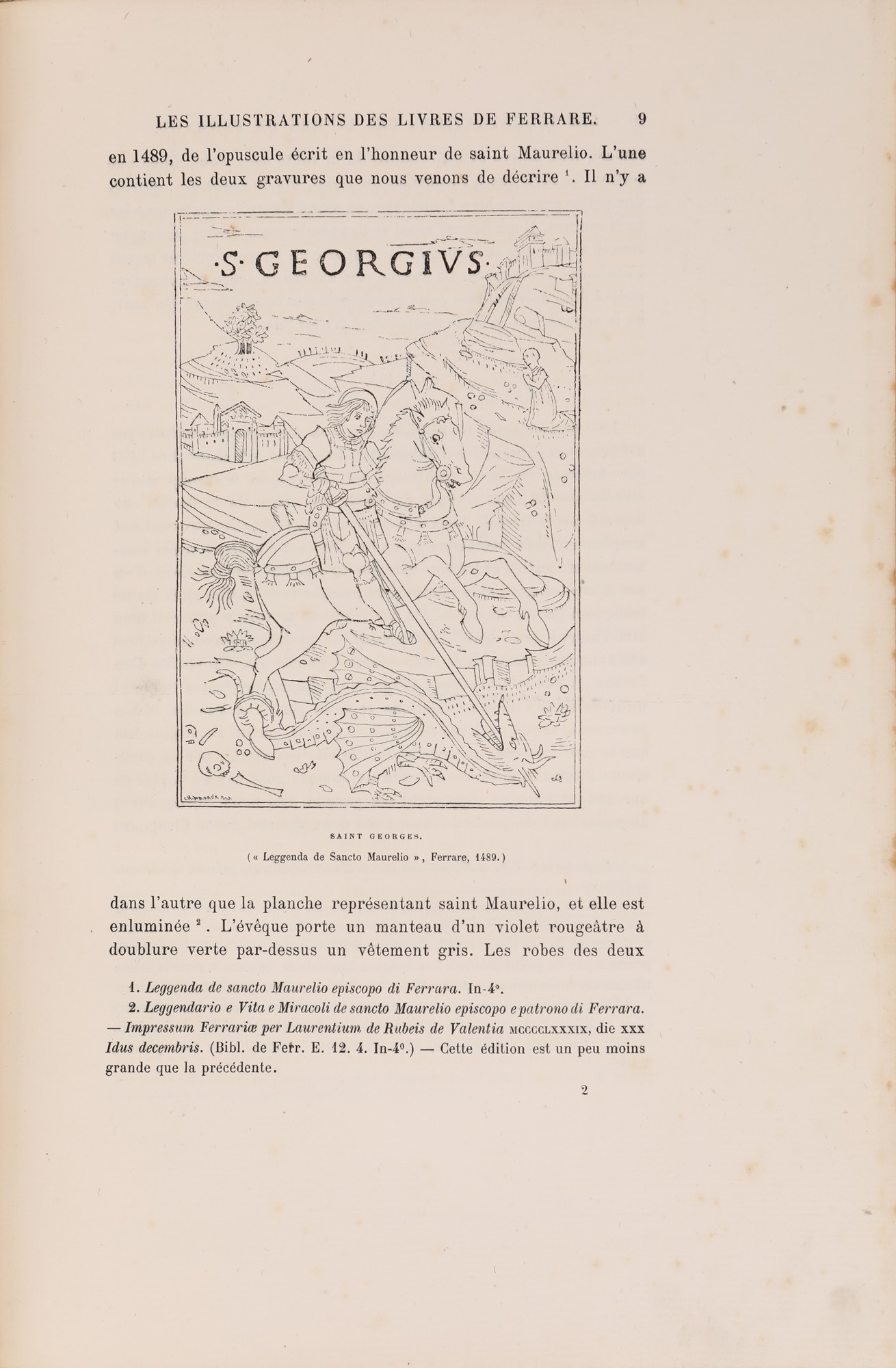 In 4°. Dedica autografa al fratello Anatole e alla sorella Marie. Raro trattato sulle pubblicazioni illustrate stampate a Ferrara tra il XV e il XVII secolo. Numerose illustrazioni nel testo e fuori testo. Legatura in mezza pergamena coeva, tassello in pelle al dorso con titolo in oro.