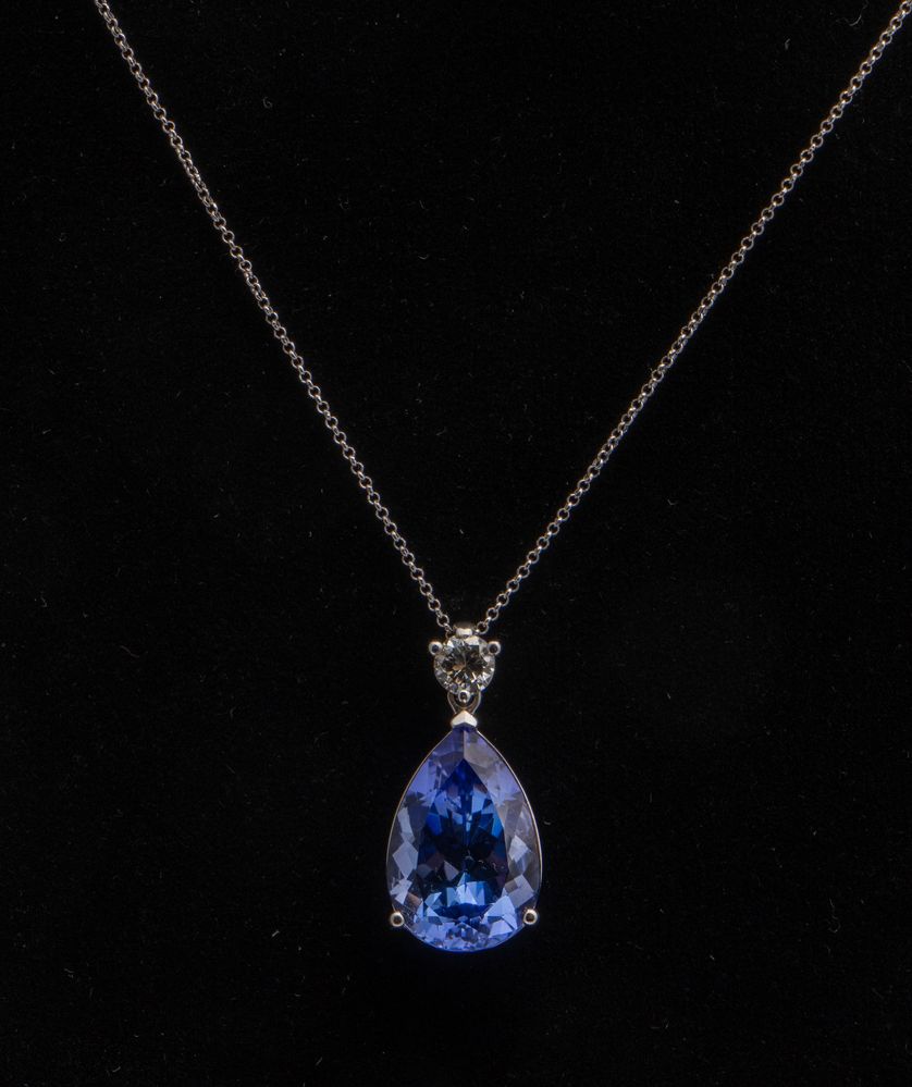 Lot 72 | COLLANA IN ORO CON DIAMANTE E TANZANITE In oro bianco, realizzata con catena...