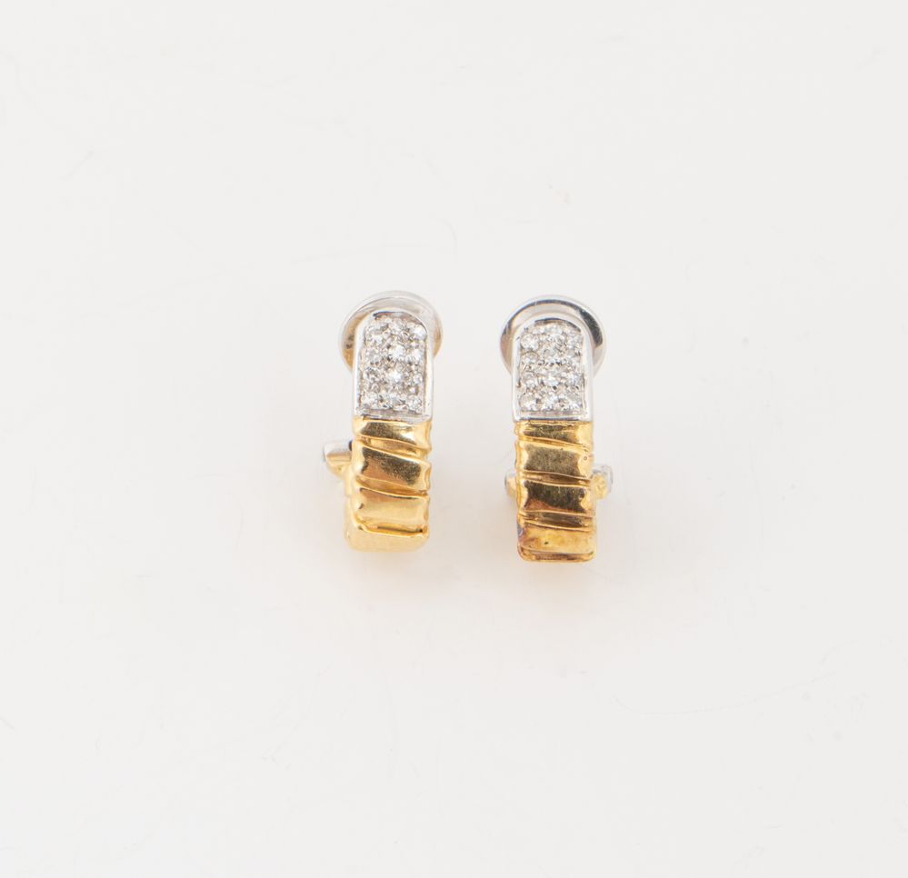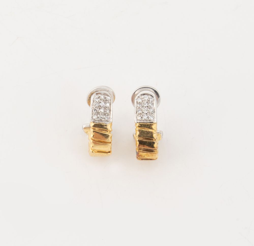 ORECCHINI IN ORO E DIAMANTI In oro giallo e bianco, realizzati in maglia a...