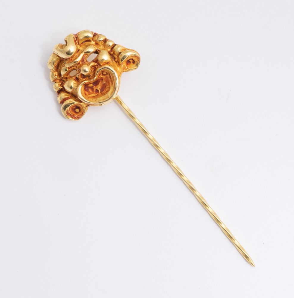 SPILLONE IN ORO In oro giallo, sormontato da mascherone recante la firma...