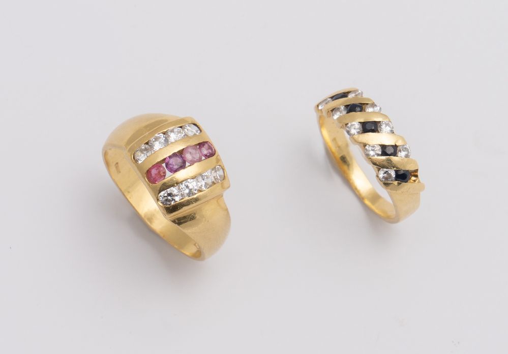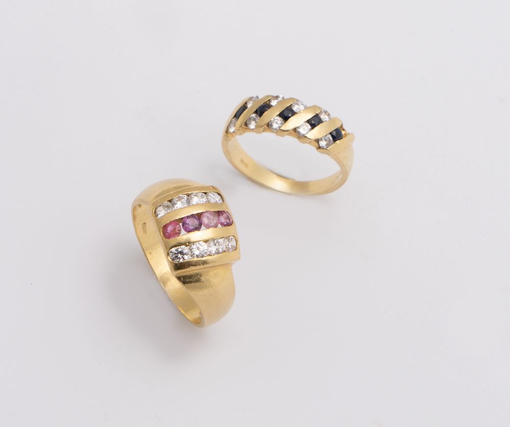 Lot 50 | DUE ANELLI IN ORO Ciascuno realizzato come una fascia decorata ad alternanza...
