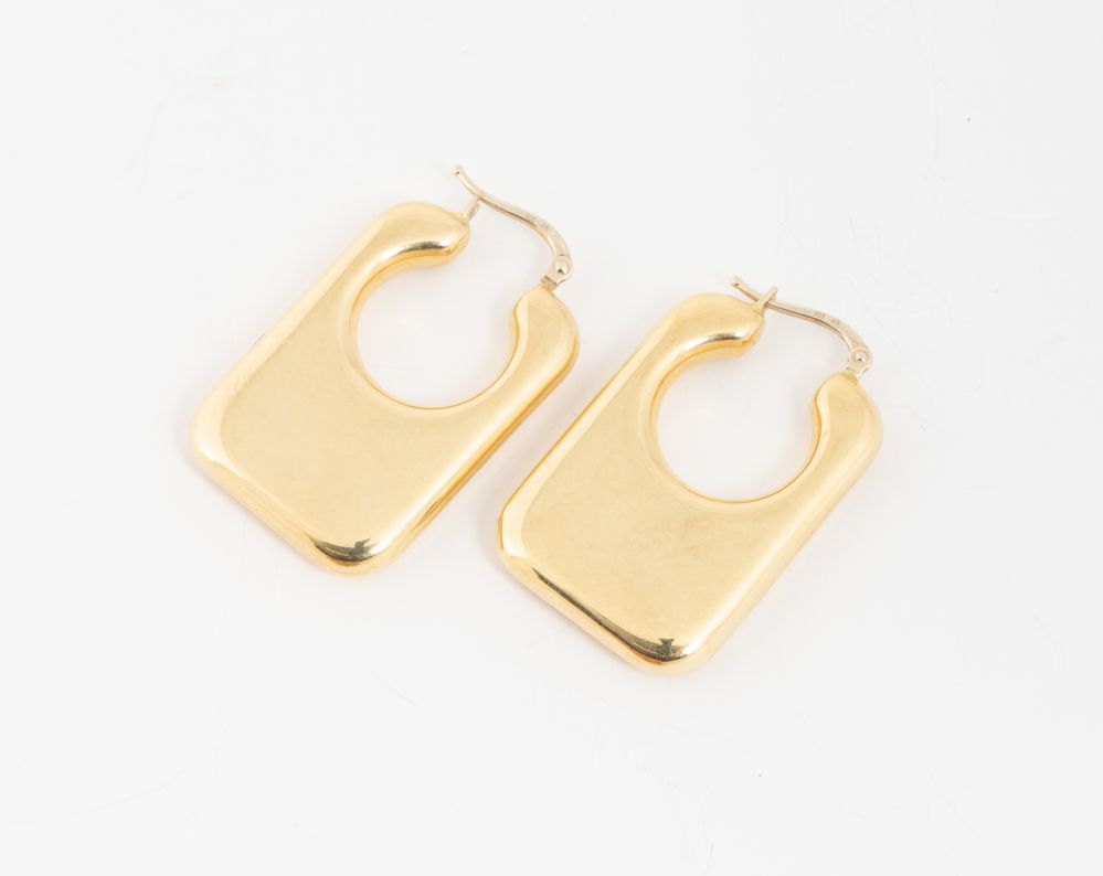 Lot 53 | ORECCHINI IN ORO Ciascuno realizzato come una formella di linea geometrica...