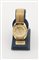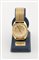 Cassa in oro giallo 18Kt, fondello a pressione, lunetta liscia, quadrante champagne, grafica nera, indici a bastone oro applicati, movimento a carica manuale, bracciale a maglie piatte incise, vetro plastica, diametro 33 mm.