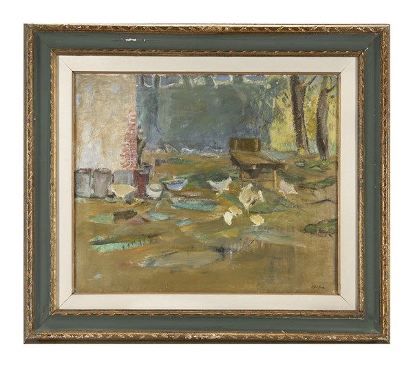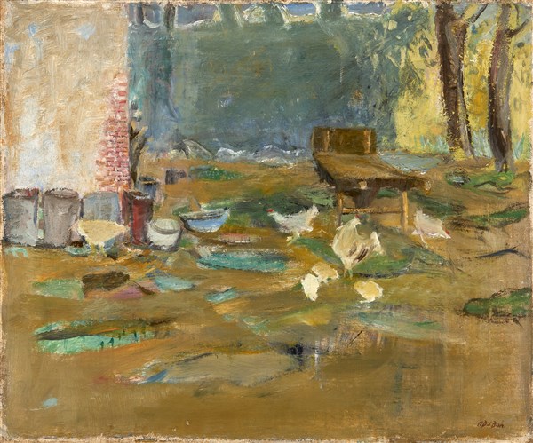 Angelo Del Bon "Cortile di campagna" olio su tela (cm 46x55) Firmato in basso a