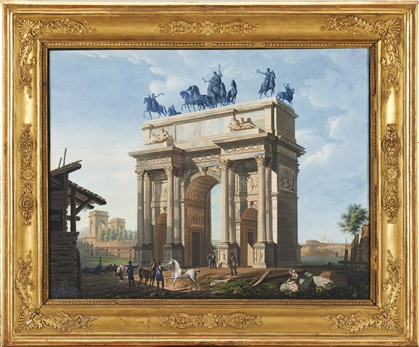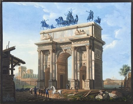 Maestro di inizio XIX sec. "Arco della Pace" tecnica mista su cartone (cm 38,