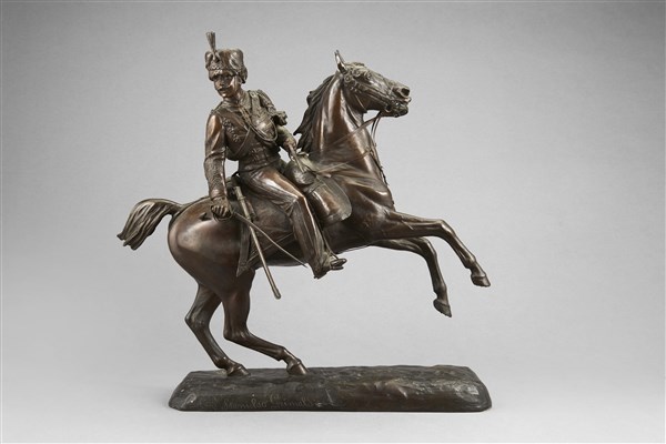 Stanislao Grimaldi "Ussaro a cavallo" gruppo in bronzo con dettagli in metallo