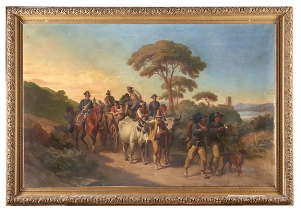 Stanislao Grimaldi "L'arresto dei briganti" olio su tela (cm 95x146) In cornice