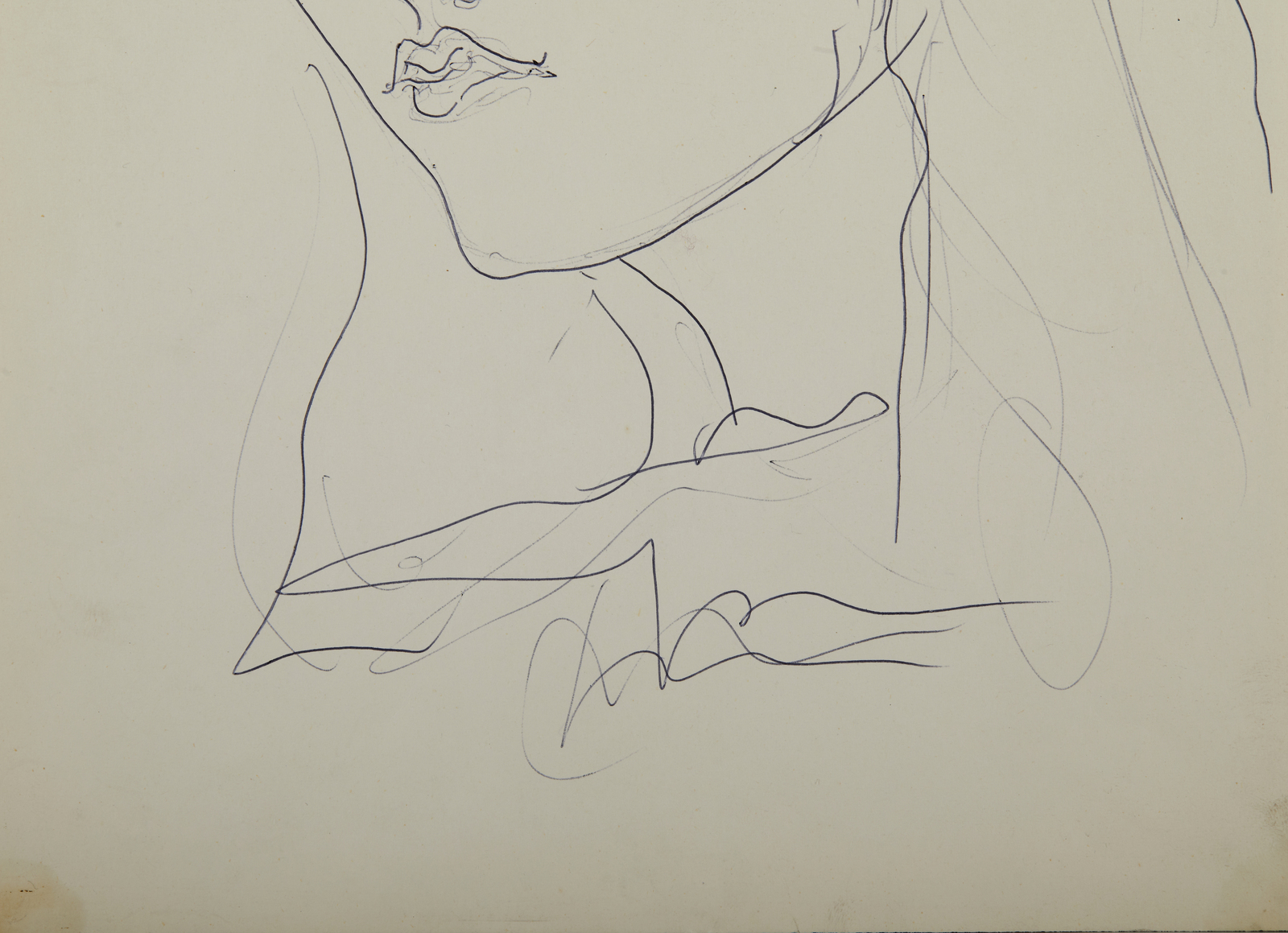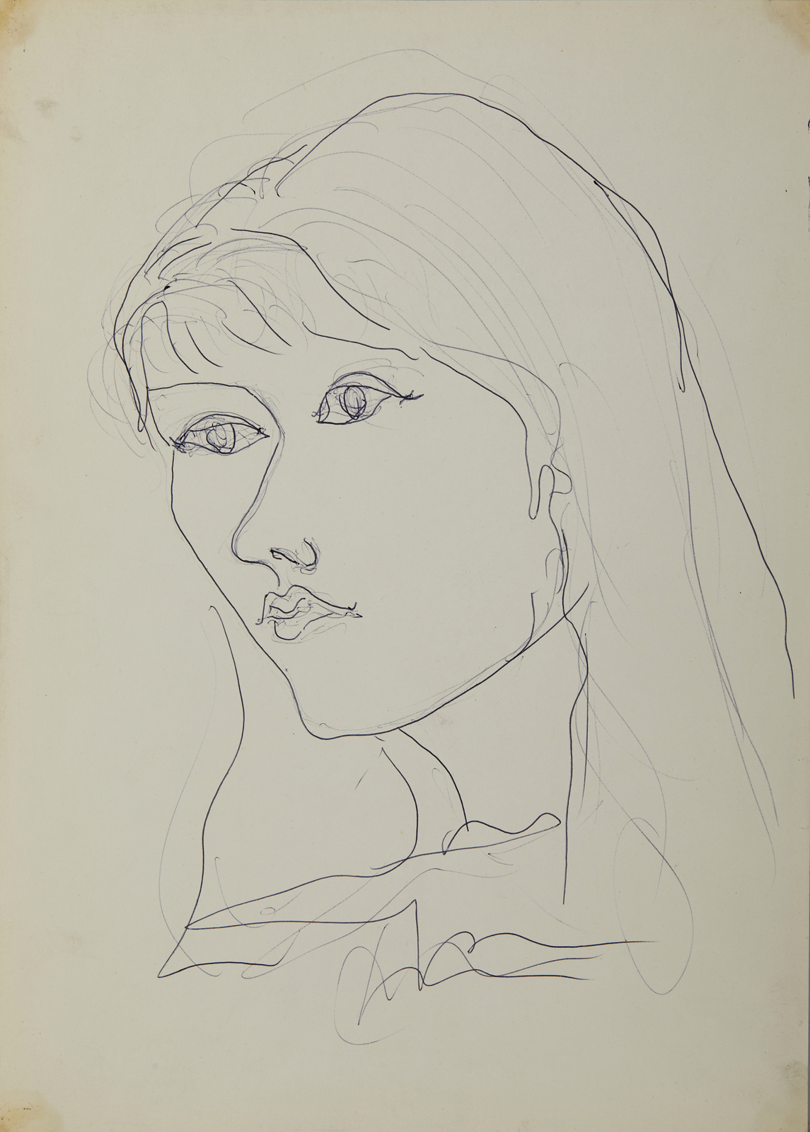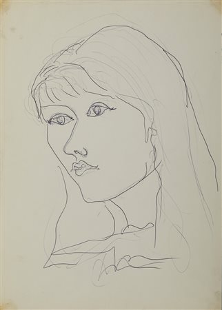 FONTANA LUCIO (1899 - 1968) Ritratto femminile. 1953. Biro su carta. Cm 24,70 x 34,60. Firma in basso al centro. Opera archiviata presso la Fondazione Lucio Fontana, Milano, come da documentazione fotografica allegata all'opera riportante il relativo numero d'inventario. Provenienza: Collezione Teresita Fontana, Milano; Collezione privata. Lievi difetti.