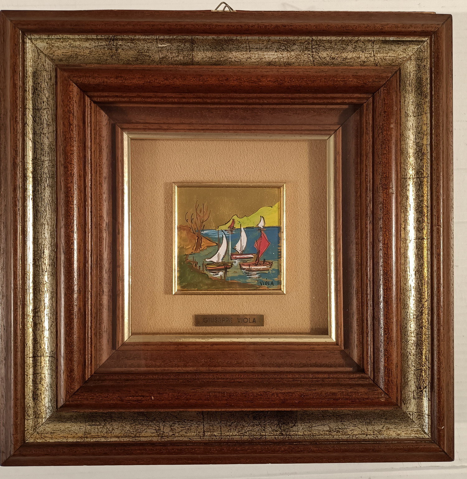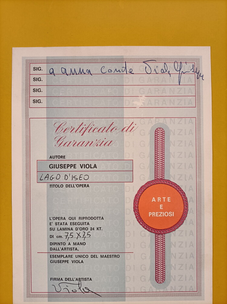 VIOLA GIUSEPPE Milano (Mi) 1933 Lago d'iseo Lamina in oro 24 carati dipinta a...