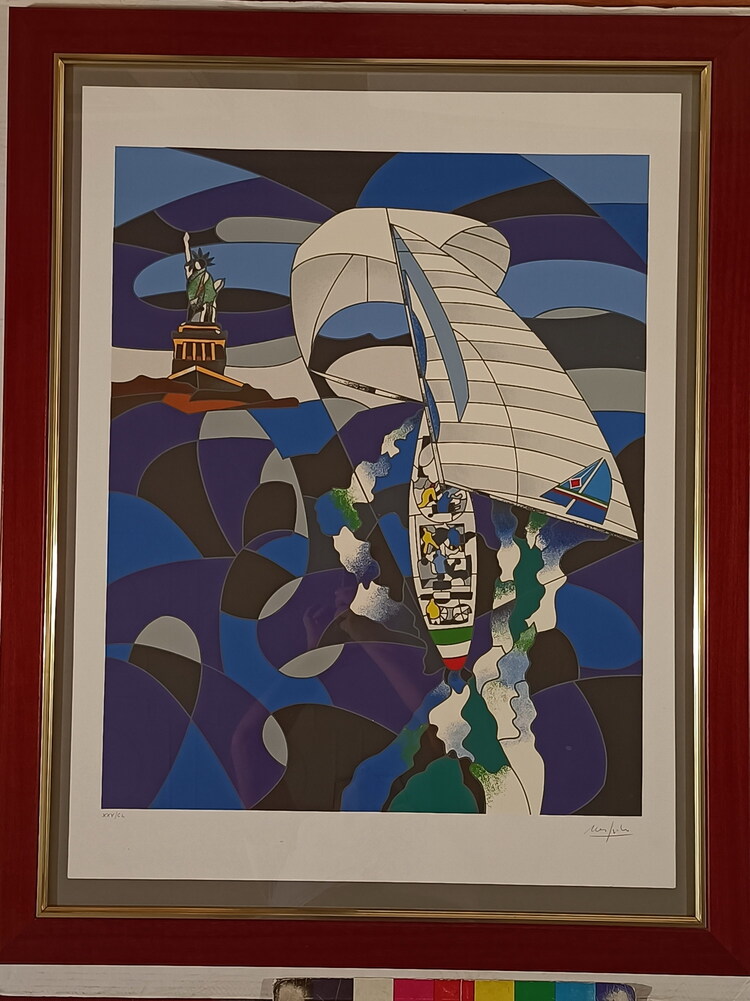 NESPOLO UGO Mosso Santa Maria (Bi) 1941 Veliero a New york Serigrafia su...