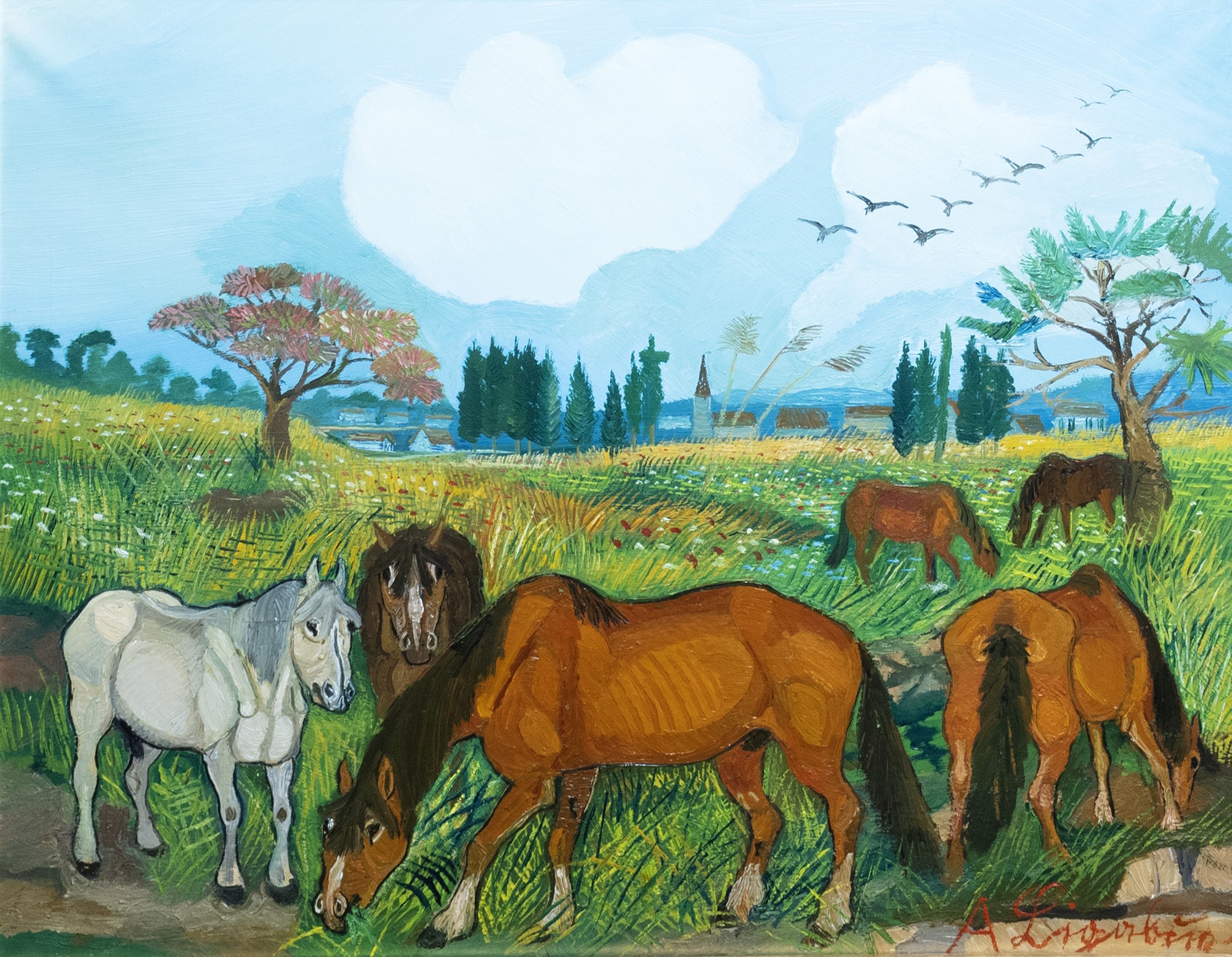 Antonio Ligabue (Zurigo 1899-Gualtieri 1965) - Cavalli al pascolo, 1952/1962