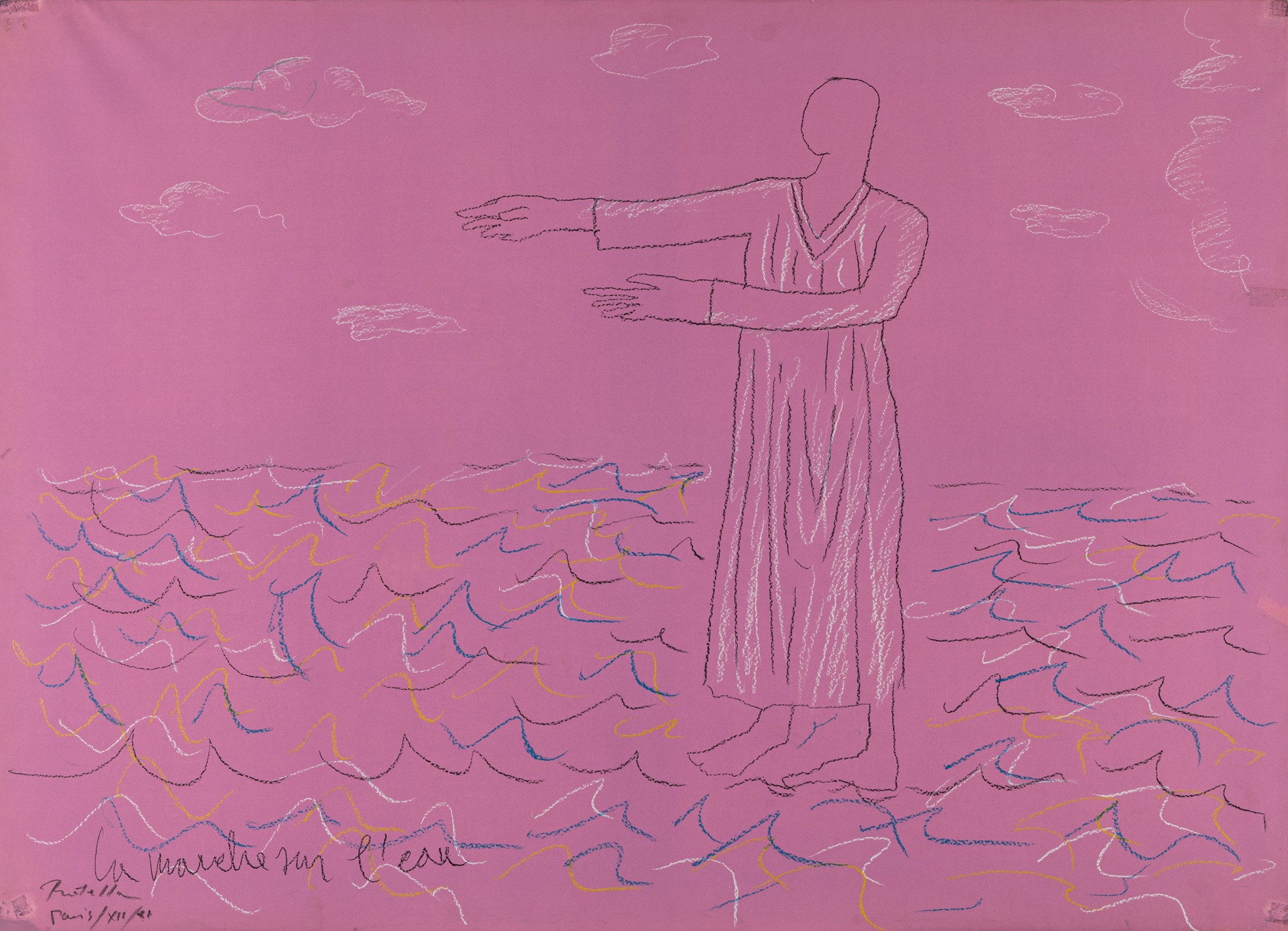 Titolato, firmato e datato in basso a sinistra: La marche sur l'eau, Rotella, Paris 3/ XII/81