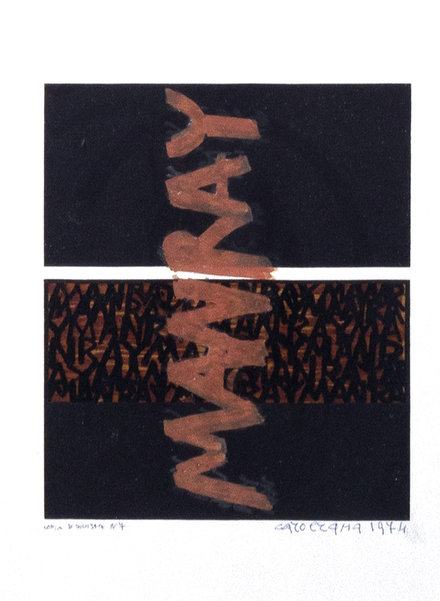 Firmato a destra: Carol Rama 1974