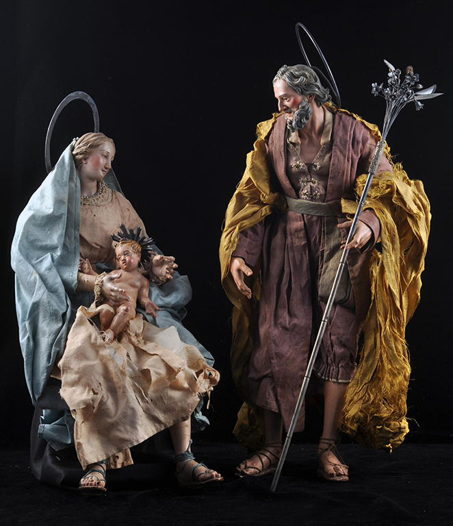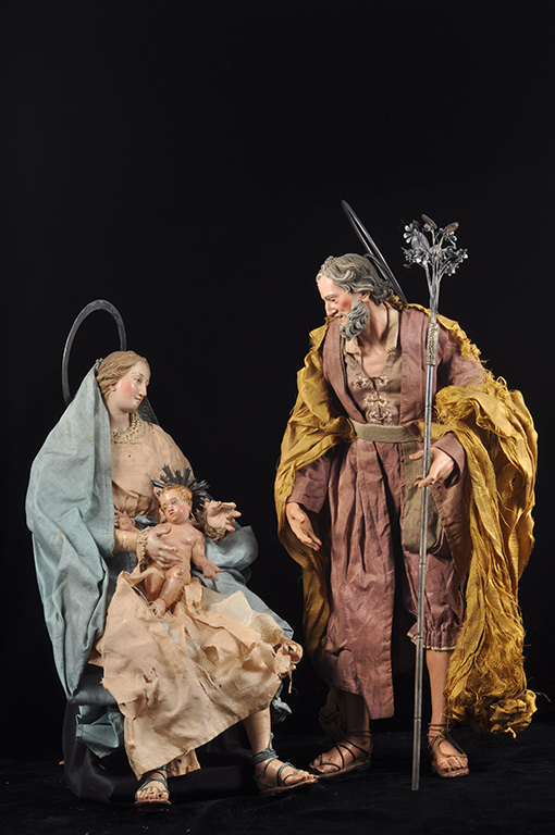 Natività composta da: San Giuseppe h cm 37 Accessori: aureola e bastone Madonna h cm 37 Accessori:aureola