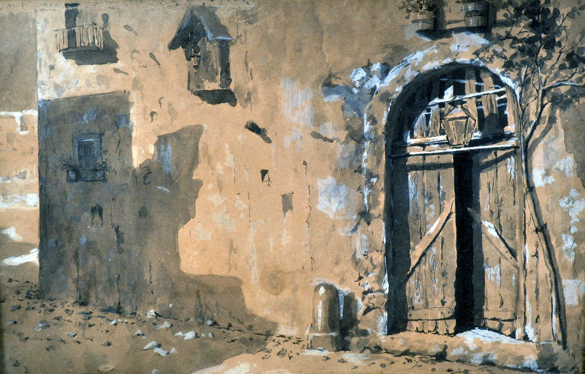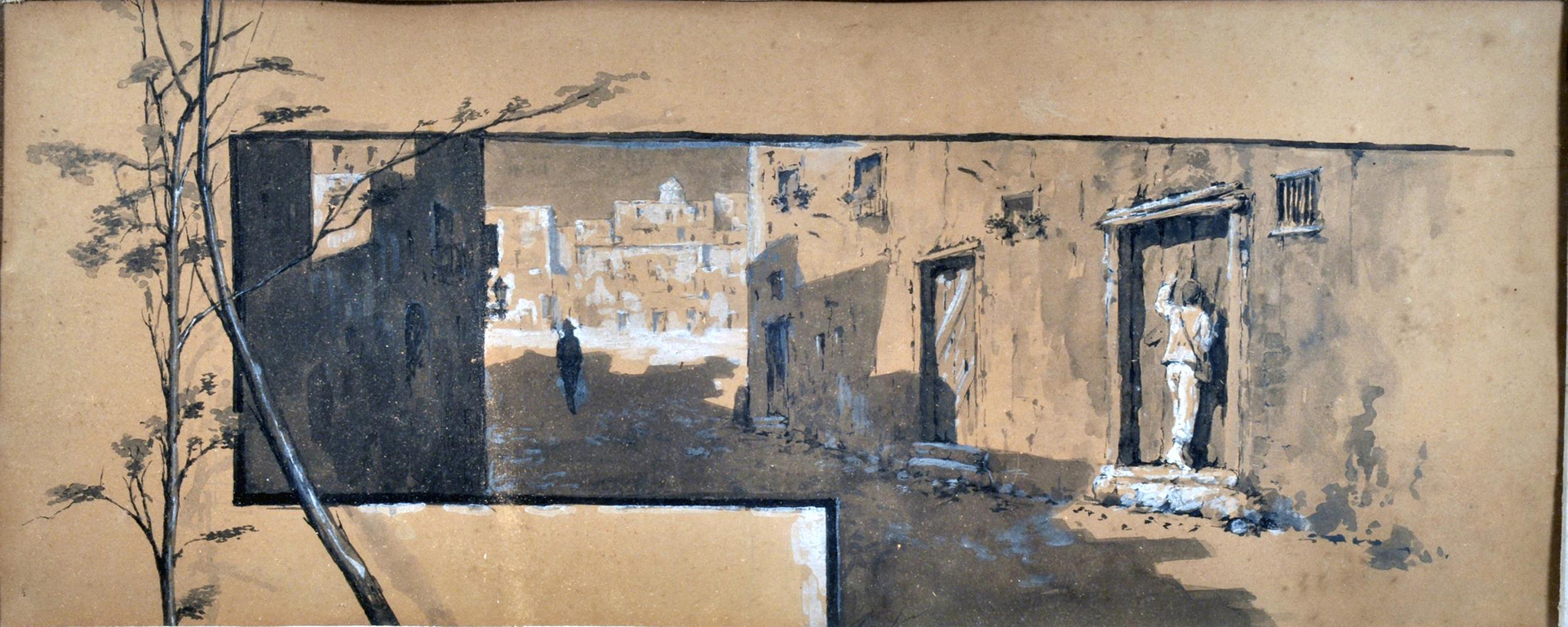 Giardiello Giuseppe ( Napoli 1871 - 1916 ) a) Vicolo napoletano, cm 18x36; b) Cortile, cm 19x30;