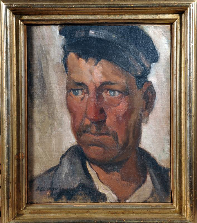 Brancaccio Giovanni (Pozzuoli, NA 1903 - 1975) Vincenzo olio su tela cm 30x40 firmato, datato e dedicato in basso a sinistra: All'amico Vincenzo Giovanni Brancaccio 1921 a tergo cartiglio e timbro Galleria d'arte Serio ,Napoli; timbro Studio Dieci, Napoli