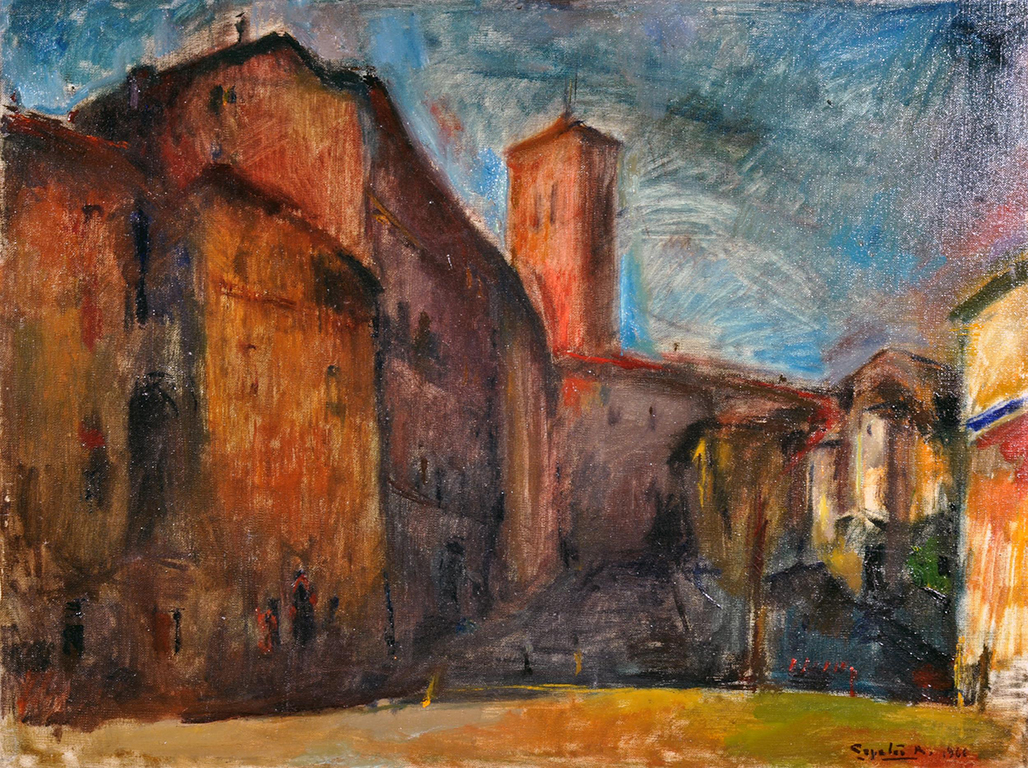 Capaldo Rubens (Parigi 1908 - Napoli 1987) Scorcio di paese olio su tela rip su cartone cm 45x59,5 firmato e datato in basso a destra: Capaldo R. 1966