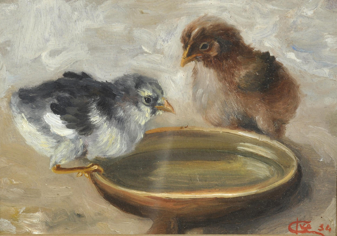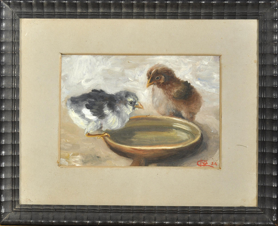 Autore non identificato Uccelli olio su tavola cm. 15x21 firmato e datato in basso a destra