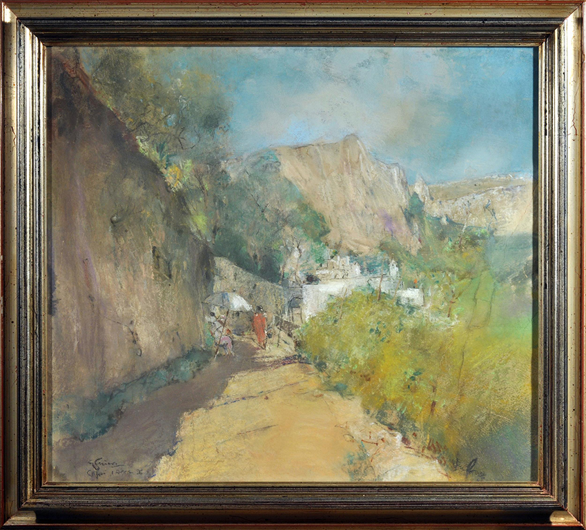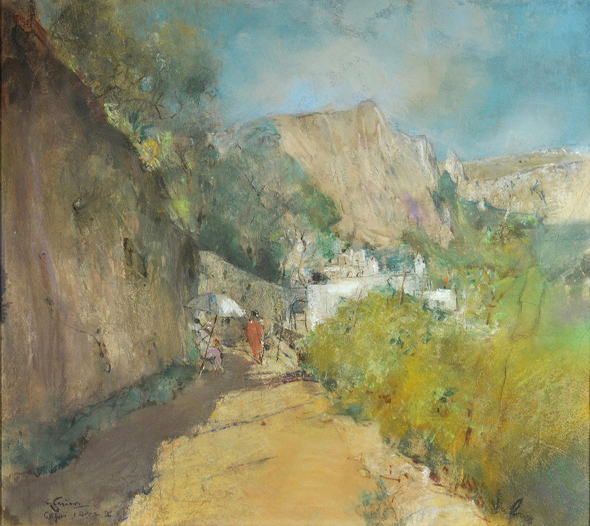 Casciaro Giuseppe (Ortelle, LE 1863 - Napoli 1941) Paesaggio di Capri pastelli su carta, cm, 44x50 firmato, iscritto e datato in basso a sinistra: G. Casciaro, Capri 1 aprile 26