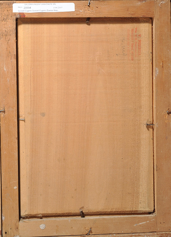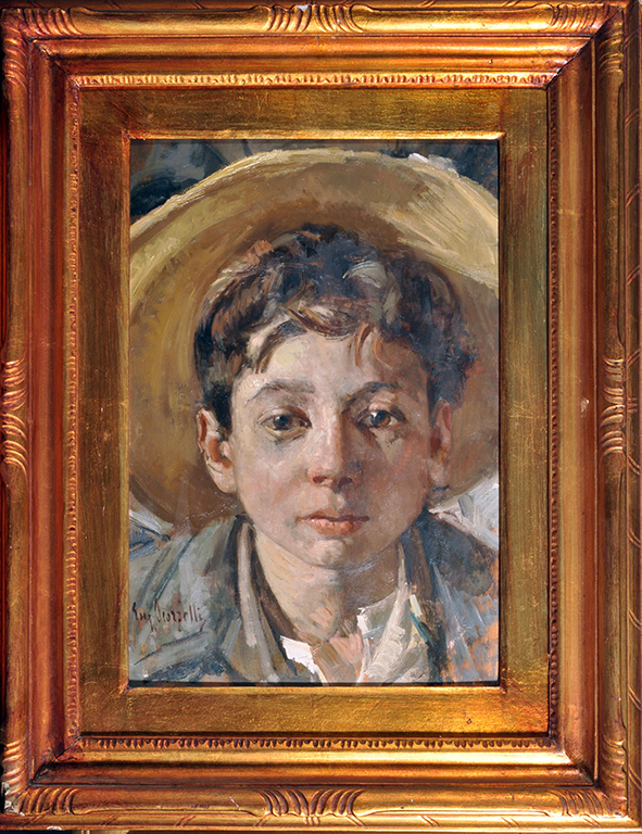 Scorzelli Eugenio (Buenos Aires - Argentina 1890 - Napoli 1958) Il cappello di paglia olio su tavola, cm 32,5x22,5 firmato in basso a sinistra: Eug. Scorzelli