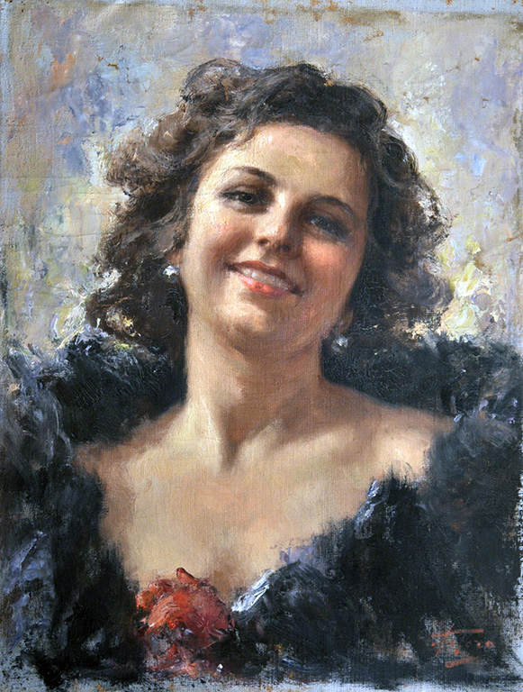 Toro Attilio (Napoli 1892 - Portici, NA 1982) Figura femminile olio su tela, cm 50x39 firmato in basso a destra: Toro