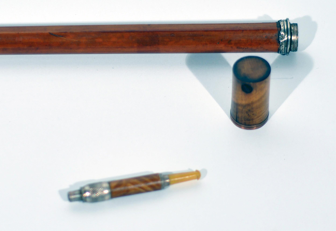 a) Bastone accessoriato con pipa.