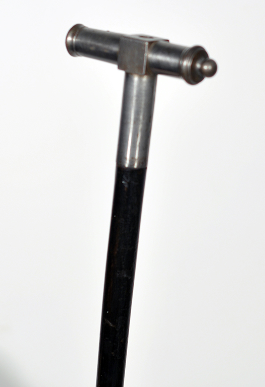 Bastone da comando con fusto in noce dipinto nero e manico con piccolo cannoncino in ferro. Puntale in ferro. Bibliografia Dike p.220, fig.21/9