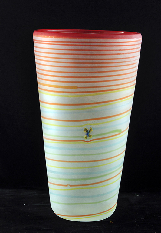 VASO in vetro satinato con inclusione di canne spezzate policrome MURANO, CENEDESE. h cm 35