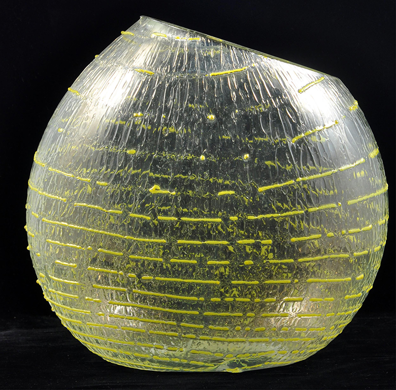 Vetri di Murano Vaso in vetro corroso con inclusione di canne spezzate gialle VETRERIA MAESTRI MURANESI h cm 27