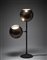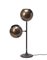 Table lamp model "521". Produced by Arteluce, Milan, 1961. Oxidized and bronzed aluminum ball reflectors, adjustable lower ball, brass stem and cast iron base