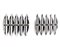 Coppia di lampade da parete a cinque luci. Italia, anni '70. Cinque schermi riflettenti fusiformi collegati da retrostruttura in acciaio inox. Recanti etichetta della manifattura. Complete di scatola originale. (cm 47x40)
