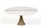Coffee table. Produced by Bernini, Milan, 1961ca. Turned cast bronze base, white marble top with square black and brown marble inlays. (h 36 cm.; d 80 cm.) (slight defects)