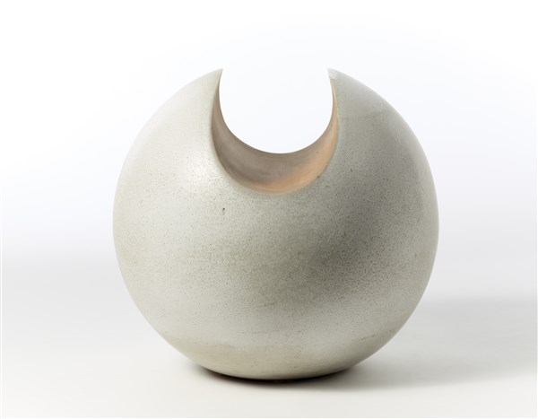 Scultura sferica in terracotta smaltata in bianco/grigio. Manifattura Ceramiche Arcore, Italia, 1972. Firmata e datata sotto la base "CAV '72". (d cm 37) (lievi difetti)