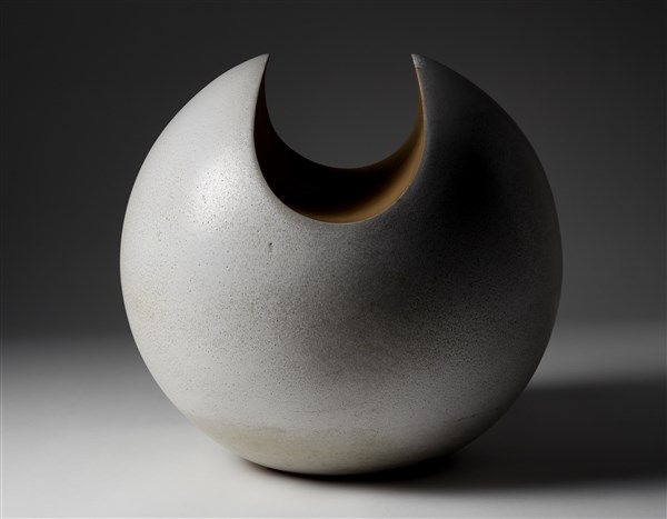 Nanni Valentini Scultura sferica in terracotta smaltata in bianco/grigio. Manifa