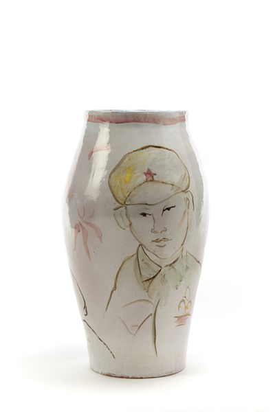 Ernesto Treccani Grande vaso in ceramica decorato con figure di soldato cinese,