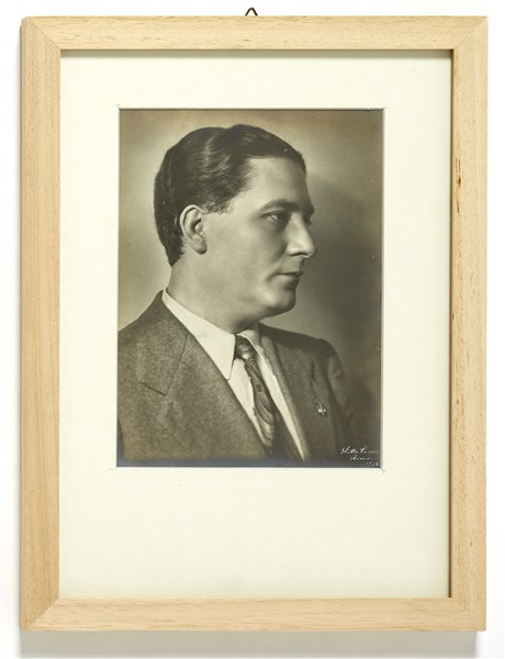 Lot of a portrait of the architect Luigi Moretti, combined with a portrait of author and unknown subject. Rome, 1936 e anni 50. Gelatine prints with silver salts, vintage. The oldest is signed, located and dated at the bottom right. In frames not coeval. (cm 17x22; 16x22)