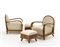 Coppia di poltroncine Déco con pouf. Italia, anni '20/'30. Legno massello e imp