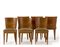 Group of six wood veneered Novecento chairs, upholstered and studded velvet covered seat, rhombus pattern threaded back. Italy, 1930s. (44x86x46 cm.) (defects)
