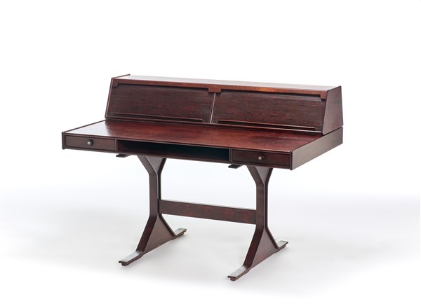 Gianfranco Frattini Scrivania a due cassetti nella fascia e alzata portadocument