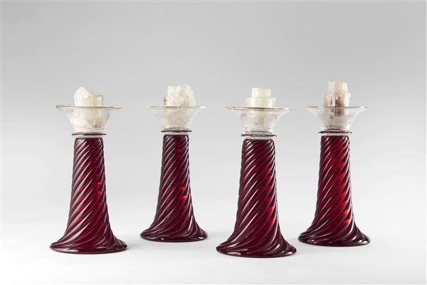 Lot 960 | Venini Quattro portacandele in vetro trasparente rosso e cristallo, fusto a torc