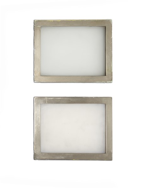 Two recessed lights with anticorodal ferrule, opaline glass and opaline plexiglass diffusers. Turin, 1944-1947. (18x14 cm.) (defects and substitutions)