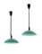 Coppia di lampade a sospensione modello "834 Cupola". Murano, 1978. Vetro incamiciato lattimo e verde zaffiro. Struttura in plastica e metallo nero. (d cm 40) (lievi difetti)