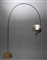 Lampada da terra ad arco. Produzione Guzzini, Italia, anni '70. Base rivestita in plastica creme, fusto in acciaio e diffusore a calotta in policarbonato. Recante lacerto di etichetta adesiva. (h cm 230) (difetti)