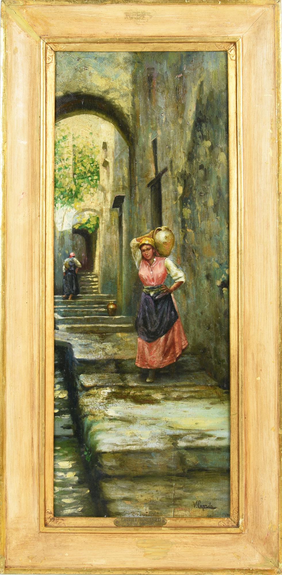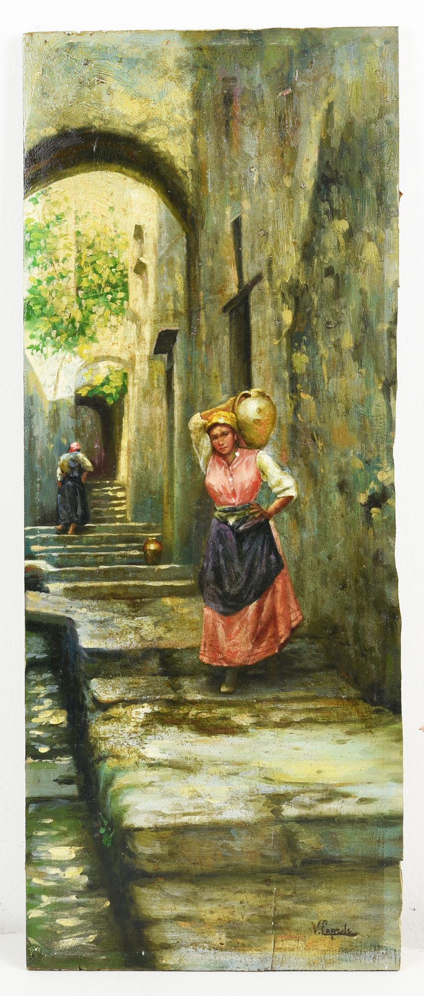 Vincenzo Caprile PORTATRICE D'ACQUA olio su tavola, cm 57,5x21,5 firma